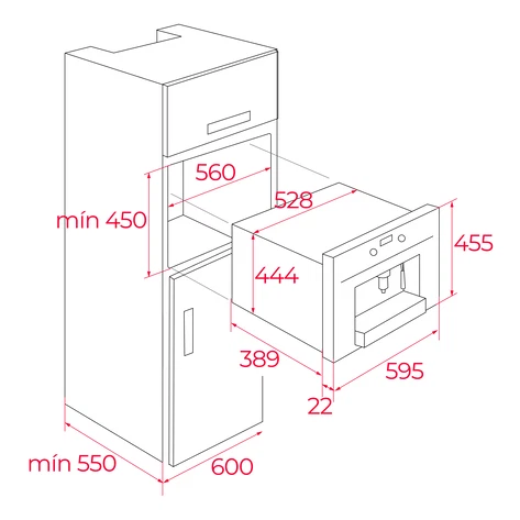 • Instalación con rieles telescópicos para sacar fácilmente la cafetera