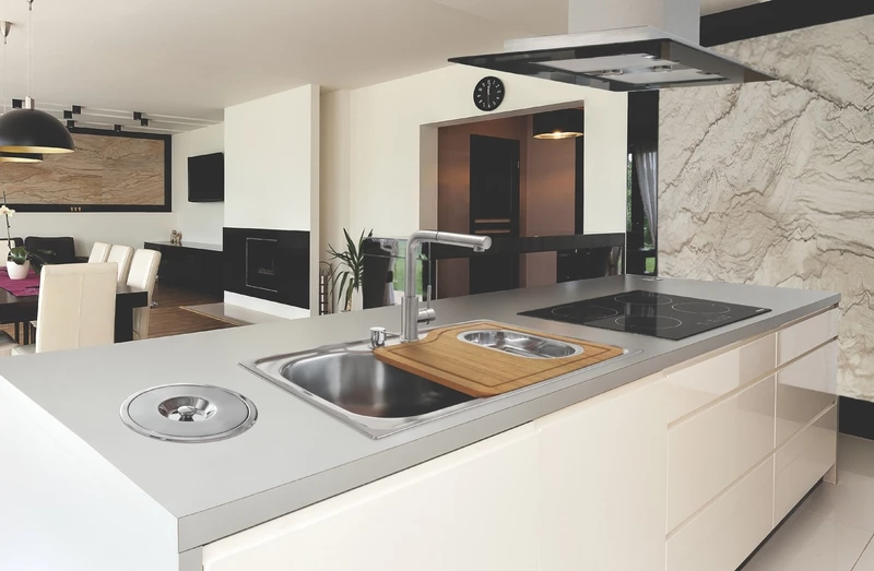 La cuba de sobreponer Tramontina Morgana 60 FX de acero inoxidable con terminación satinada 69 x 49 cm con basurero de embutir de 5 l de capacidad, tabla de madera, dosificador de jabón, y canasto colador y válvula es la elección ideal para quienes quieren agregarle estilo, practicidad y durabilidad al proyecto de su cocina. Fabricada en acero inoxidable con terminación satinada, esta cuba viene con válvula de lujo de 4 1/2 pulgadas de diámetro, basurero de embutir Clean de 5 l de capacidad, tabla de madera, dosificador de jabón y canasto colador de acero inoxidable.