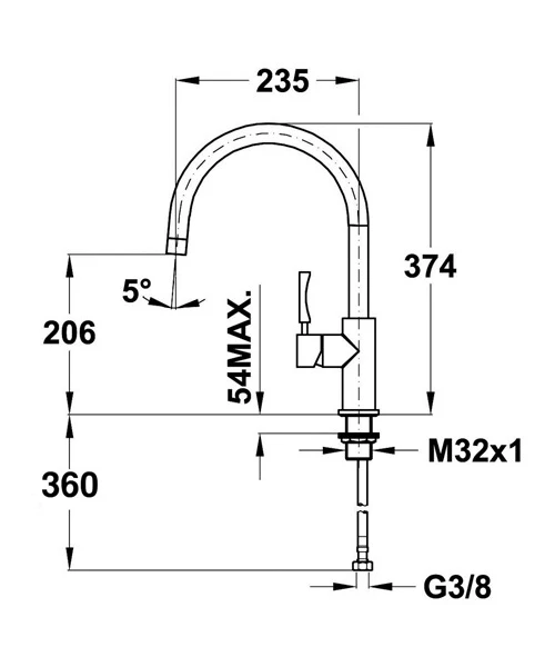 Grifo de cocina monomando con caño alto giratorio en acero inoxidable